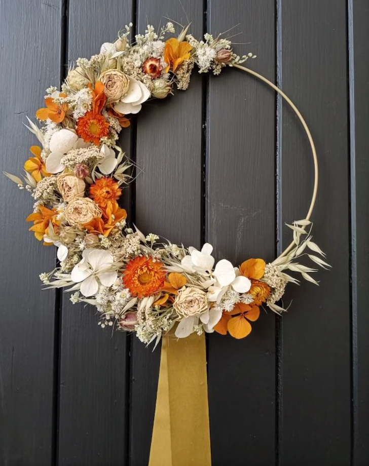 Artprint Automne Girl – Patricia Illustration // Tasse chat noir avec citrouille – La Maison De Léa // Boucles d’oreilles résine – SunKris // Ours polaire brodé – MountRoyalMint // Béret en laine brodé de baies d’automne – EmmaAstleEmbroidery // Haori vintage – ConononoJapan // Rond de serviette personnalisé – Mameez // Serviette de table – LesReveriesdIzzy // Automne – Bougie artisanale – Saugette // Couronne murale de fleurs séchées – GraindFolies