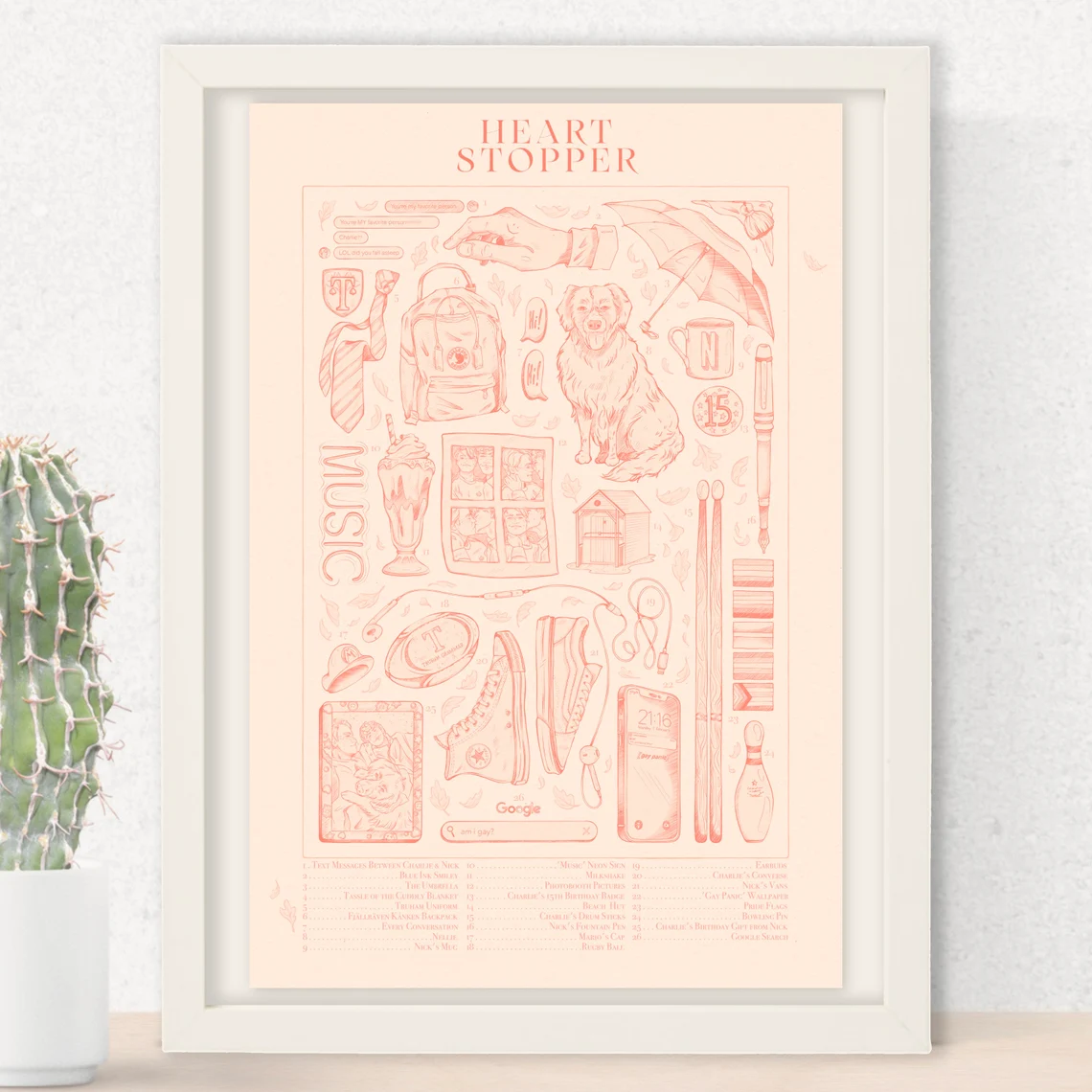 Converse brodée Heartstopper – Hanastore // Porte-clés Heartstopper – PoiPsd // Mug HeartStopper – TheGayWitchShoppe // Casquette Heartstopper – Retrook // Artprint Heartstopper – PeachesObviously // T-shirt HeartStopper – UpcyCute // Patch thermocollant Truham – SquirrelsNookStore // Bougie Elle 100% cire de soja – webofwonder // Totebag Heartstopper – Journallee // Sweat Heartstopper – VEPStore // Carte A5 Charlie – sneesbee // Pin’s heartstopper – LitPinsandCo