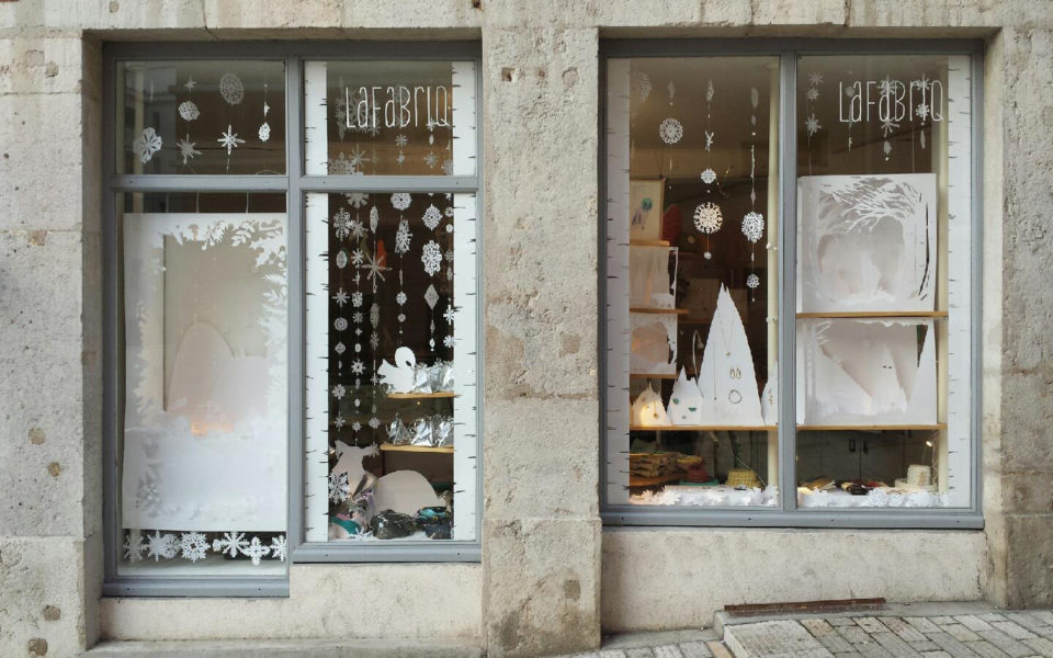 Très prolifique, à chaque saison, la vitrine de lafabriq devient le terrain de jeu des 5 créatrices. Pour ce Noël, armées de cutters et de paillettes, elles ont confectionné une mise en scène composée de scénettes tout en dentelle de papier blanc. Les animaux de la forêt et les villageois sont sortis pour profiter de la magie des premières neiges. Retrouvez votre âme d’enfant en plongeant dans ce Noël blanc des plus féeriques. Un travail méticuleux pour un rendu juste sublime, non ?