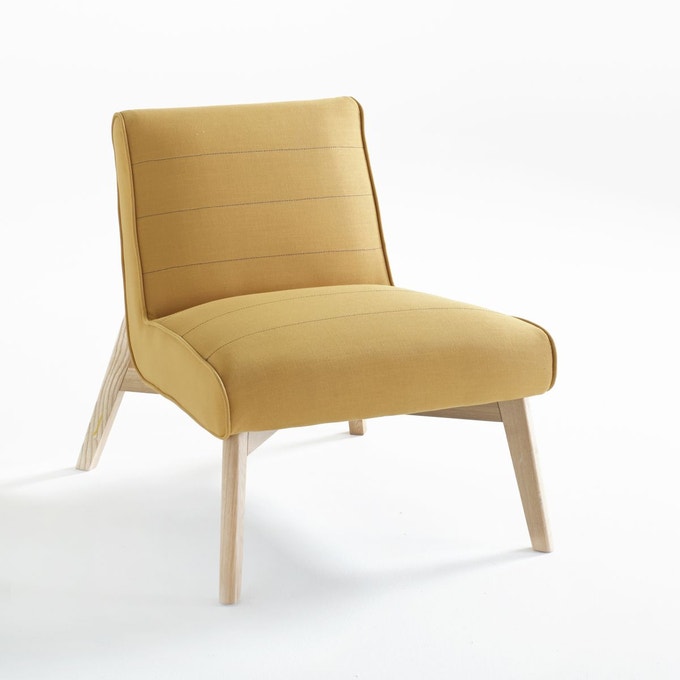 Table basse – La Redoute Intérieurs // Etagère murale – La Redoute Intérieurs // Rideau lin lavé – La Redoute Intérieurs // Eventail mural – La Redoute Intérieurs // Pouf – La Redoute Intérieurs // Canapé convertible – La Redoute Intérieurs