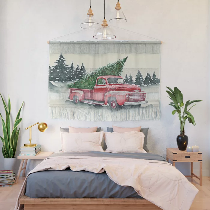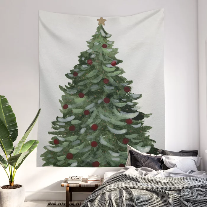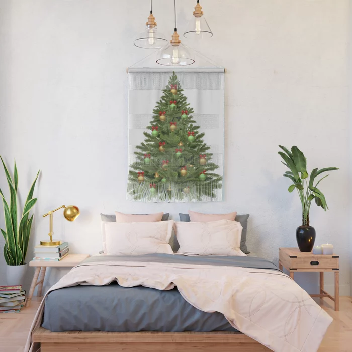 Si vous n’avez pas la place ou l’envie d’installer un vrai sapin de Noël chez vous, vous pouvez opter pour une solution plus simple et originale : une tenture murale ou une impression sur toile représentant un sapin de Noël. Il existe de nombreux motifs de sapins proposés par des artistes illustrateurs sur le site Society6. Du sapin naturel, chaleureux et festif aux motifs de sapins plus abstrait et géométriques. Vous trouverez forcément un modèle de tentures ou de toile imprimée que vous pourrez accrocher au mur, sur une porte, ou même au plafond afin de célébrer Noël sans encombrer votre espace.