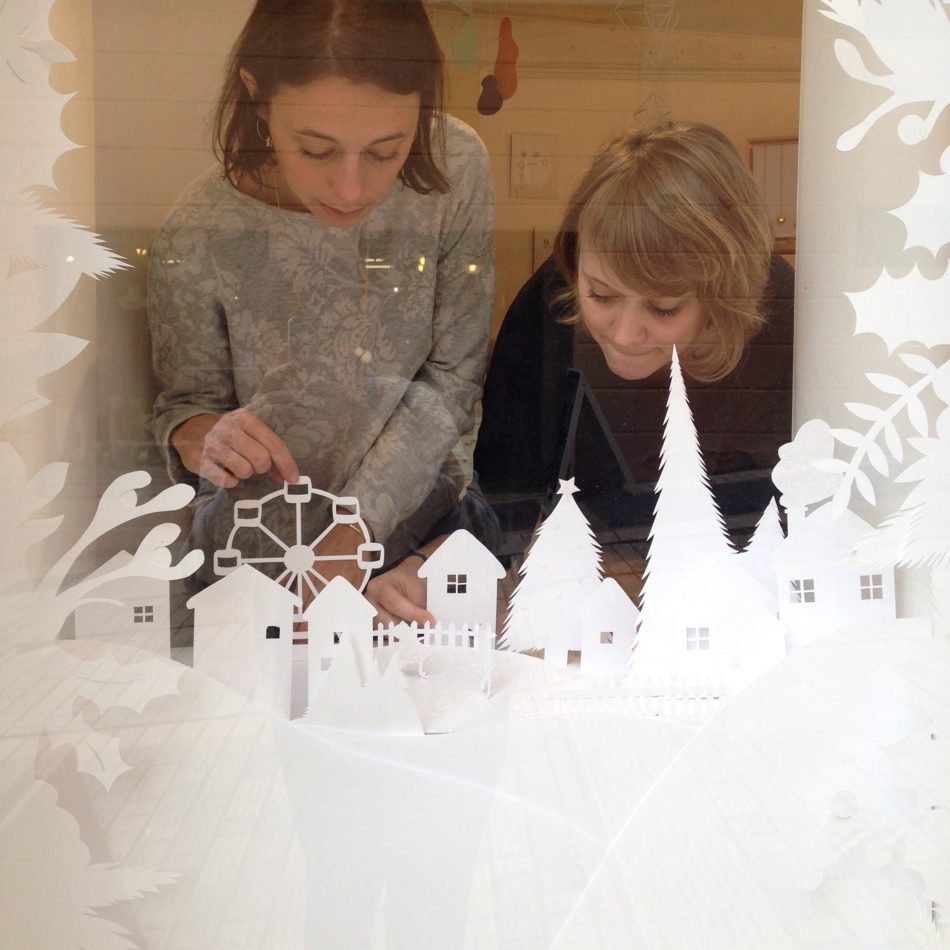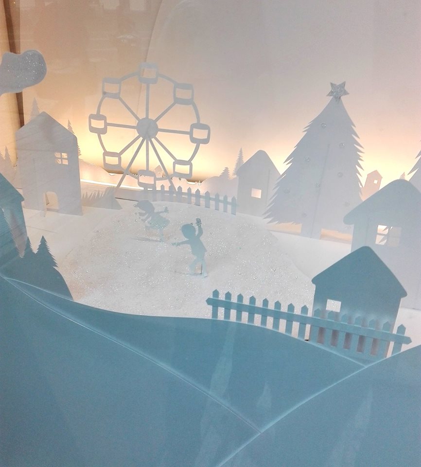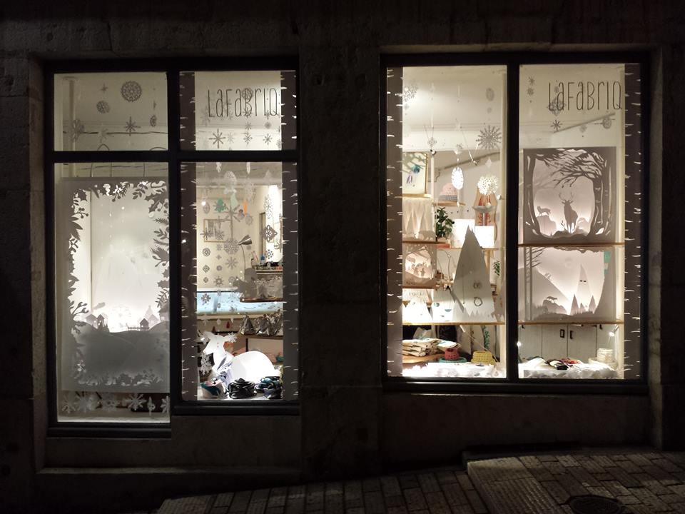 Très prolifique, à chaque saison, la vitrine de lafabriq devient le terrain de jeu des 5 créatrices. Pour ce Noël, armées de cutters et de paillettes, elles ont confectionné une mise en scène composée de scénettes tout en dentelle de papier blanc. Les animaux de la forêt et les villageois sont sortis pour profiter de la magie des premières neiges. Retrouvez votre âme d’enfant en plongeant dans ce Noël blanc des plus féeriques. Un travail méticuleux pour un rendu juste sublime, non ?